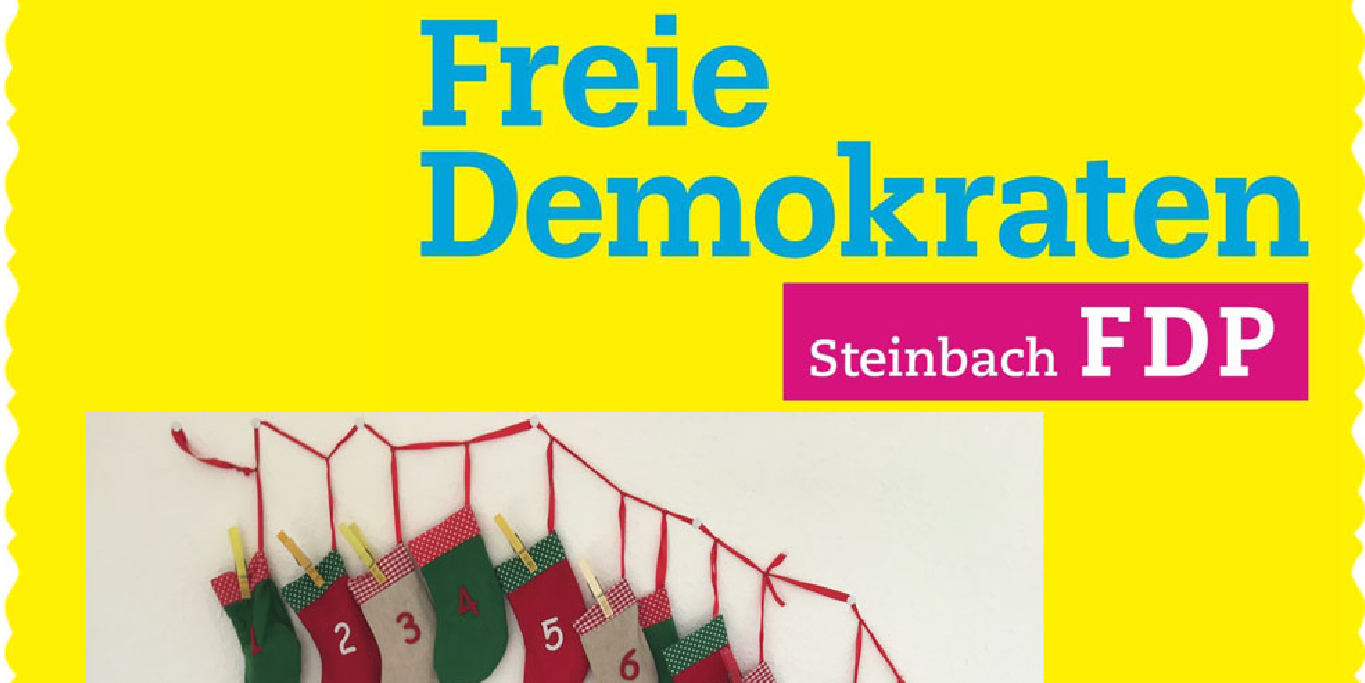 „Wir haben schon einige vielseitige Posts für unseren digitalen Adventskalender geplant und hoffen, dass wir die Steinbacherinnen und Steinbacher somit in der besonderen Vorweihnachtszeit erfreuen können. Zu viel wollen wir noch nicht verraten, es werden Bilder, Videos, Musik u.v.m. dabei sein. Schauen Sie gerne auf unserer Facebookseite vorbei“, so Simone Horn, stellvertretende Ortsverbandsvorsitzende der FDP Steinbach.
