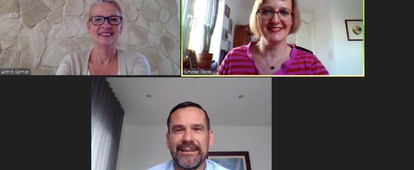 Astrid Gemke, Simone Horn und Lars Knobloch kurz vor Start des ersten Eltern-Video-Chats