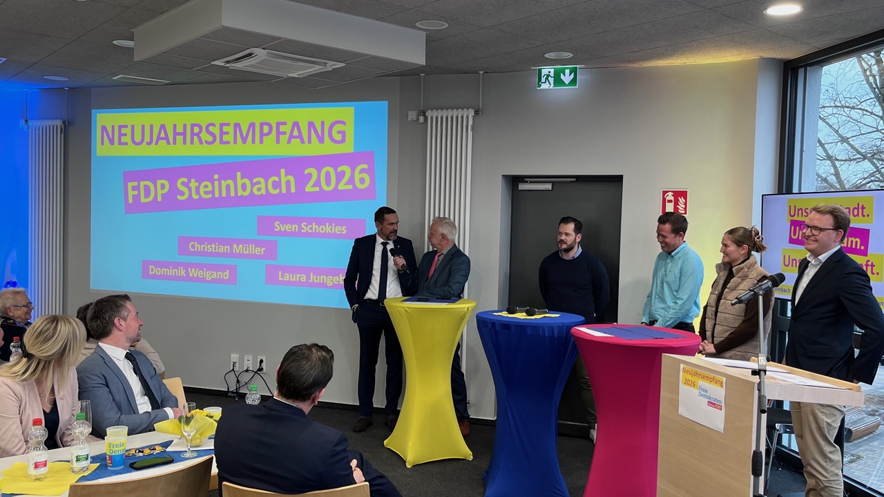 Die FDP Steinbach ist mit ihrem traditionellen Neujahrsempfang erfolgreich ins neue Jahr gestartet. Über 130 Besucherinnen und Besucher aus Politik, Wirtschaft und Stadtgesellschaft folgten der Einladung ins Bürgerhaus Steinbach und nutzten die Gelegenheit zum Austausch über kommunale, nationale und internationale Themen. Begrüßt wurden die Gäste von der stellvertretenden Fraktionsvorsitzenden Laura Jungeblut, die in ihrer Eröffnung die Bedeutung eines offenen politischen Dialogs und eines respektvollen Miteinanders in Steinbach hervorhob. Gerade in bewegten Zeiten sei es wichtig, gemeinsam nach vorne zu blicken und Verantwortung zu übernehmen.