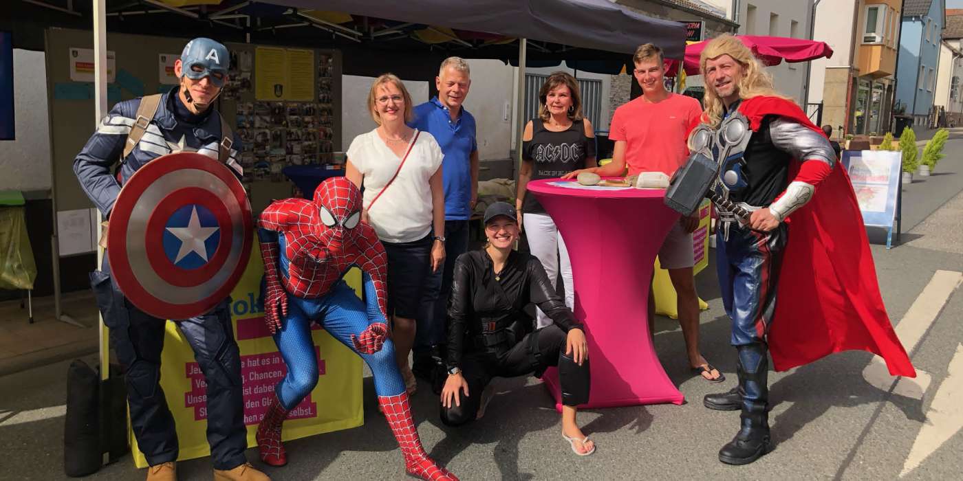 In Absprache mit der Tanzgarde TG08 hatte diese ihren Standdienst um eine Stunde bis 19:00 Uhr verlängert und so konnten am frühen Abend weiterhin coole Cocktails mit und ohne Alkohol genossen werden. Den dazugehörigen Sommer-Soundtrack lieferten die Steinbacher Liberalen. Und das nicht zu knapp: Exakt 60 Minuten gab es kräftige Beats aus den 1970er Jahren im aktuellen neuen Soundgewand. Wie schon beim letzten Stadtfest 2019 schauten auch in diesem Jahr ganz besondere Gäste am Stand vorbei: die Avengers. Die Superhelden trotzten den irdischen Gewalten und besuchten das “heiße Steinbacher Pflaster”. Der Leiter des Orga-Teams Markus Wittek erzählt: “Die Marvel-Superstars sind ein kleines Hobby von mir, und es ist schön zu sehen, wie die Kinder auf einen zurennen, um ihre Helden zu begrüßen und Fotos zu machen. Das Stadtfest zu organisieren und umzusetzen, macht mir viel Spaß, und ich bin dankbar über jede helfende Hand, die in diesem Jahr mit angepackt hat. Mit so einem großen Team macht es gleich noch mehr Spaß! Wir freuen uns auf das Stadtfest 2023.”