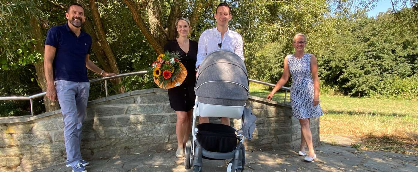 Astrid Gemke, Fraktionsvorsitzende der FDP Steinbach und Lars Knobloch, Ortsvorsitzender der FDP Steinbach trafen sich am Apfelweinbrückchen zu einem kleinen Spaziergang mit der jungen Familie Kletzka und gratulierten im Namen der ganzen FDP Steinbach herzlich zur Geburt des ersten Kindes.