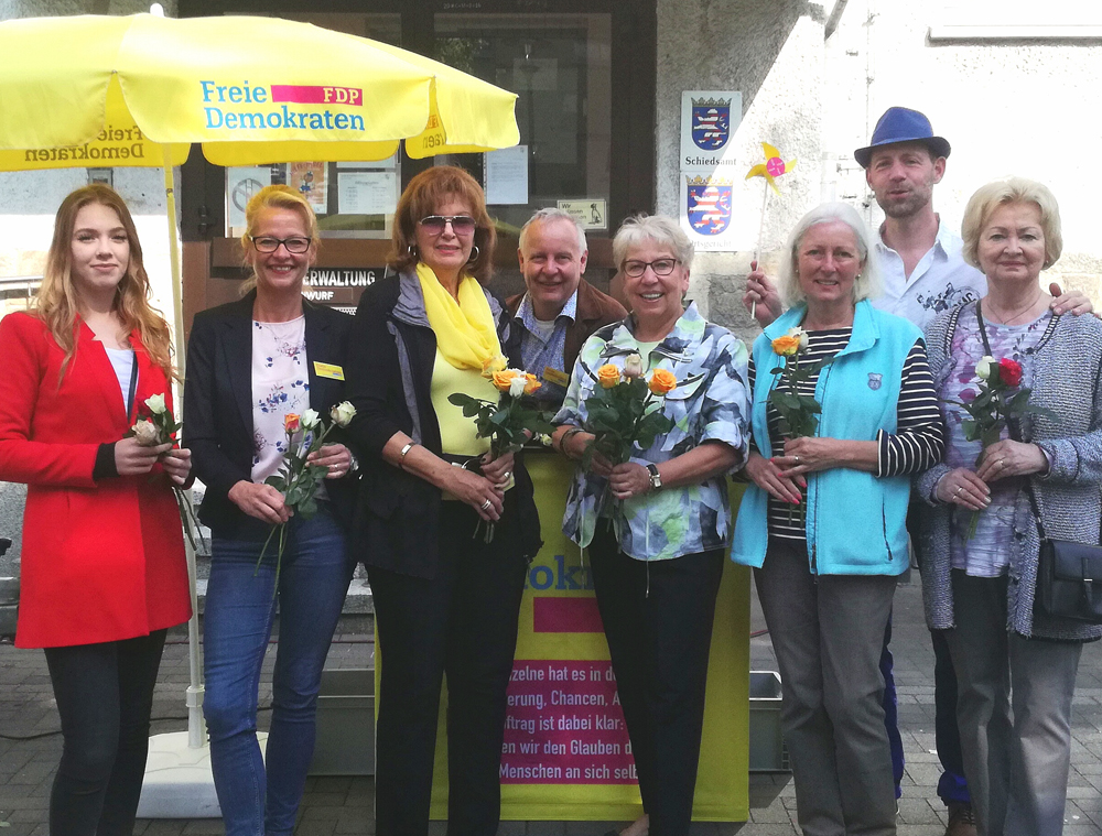 Seit vielen Jahren ist es für die FDP Steinbach Tradition, Rosen an dem Samstag vor Muttertag zu verteilen. An diesem sonnigen Samstag auf dem Wochenmarkt verteilte die FDP 200 Rosen an Frauen und auch an Männer, die an diesem Samstag auf dem Wochenmarkt für ihre Familie eingekauft hatten. Dabei entwickelten sich viele interessante Gespräche mit den Steinbacher Bürgerinnen und Bürger.
